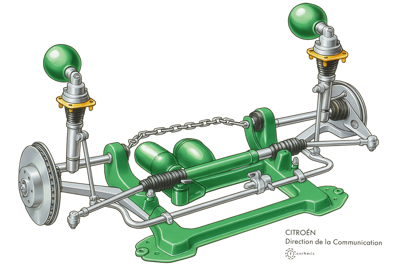Provádíme kompletní servis hydropneumatického systému vozů Citroën – kontrolu a doplnění hydraulické kapaliny (LHM/LDS), odvzdušnění a diagnostiku netěsností. Zajišťujeme také kontrolu a doplnění tlakových zásobníků (koulí), měření tlaku a jejich případnou výměnu.